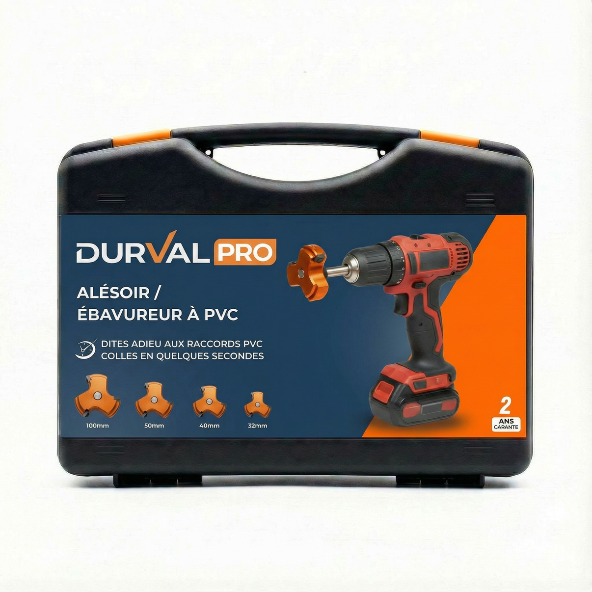 La gamme DurvalPro Alésoir à PVC 3 lames, utilise trois lames en carbure haute performance, offrant une coupe rapide et fluide même sur les gros diamètres, jusqu’à 100 mm.